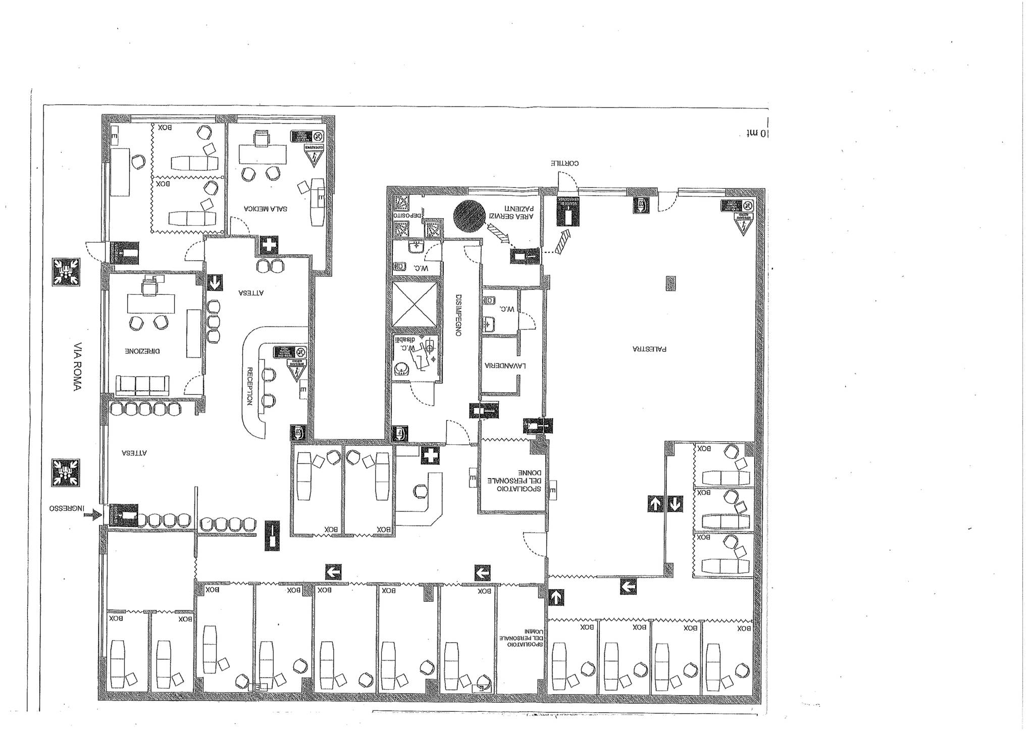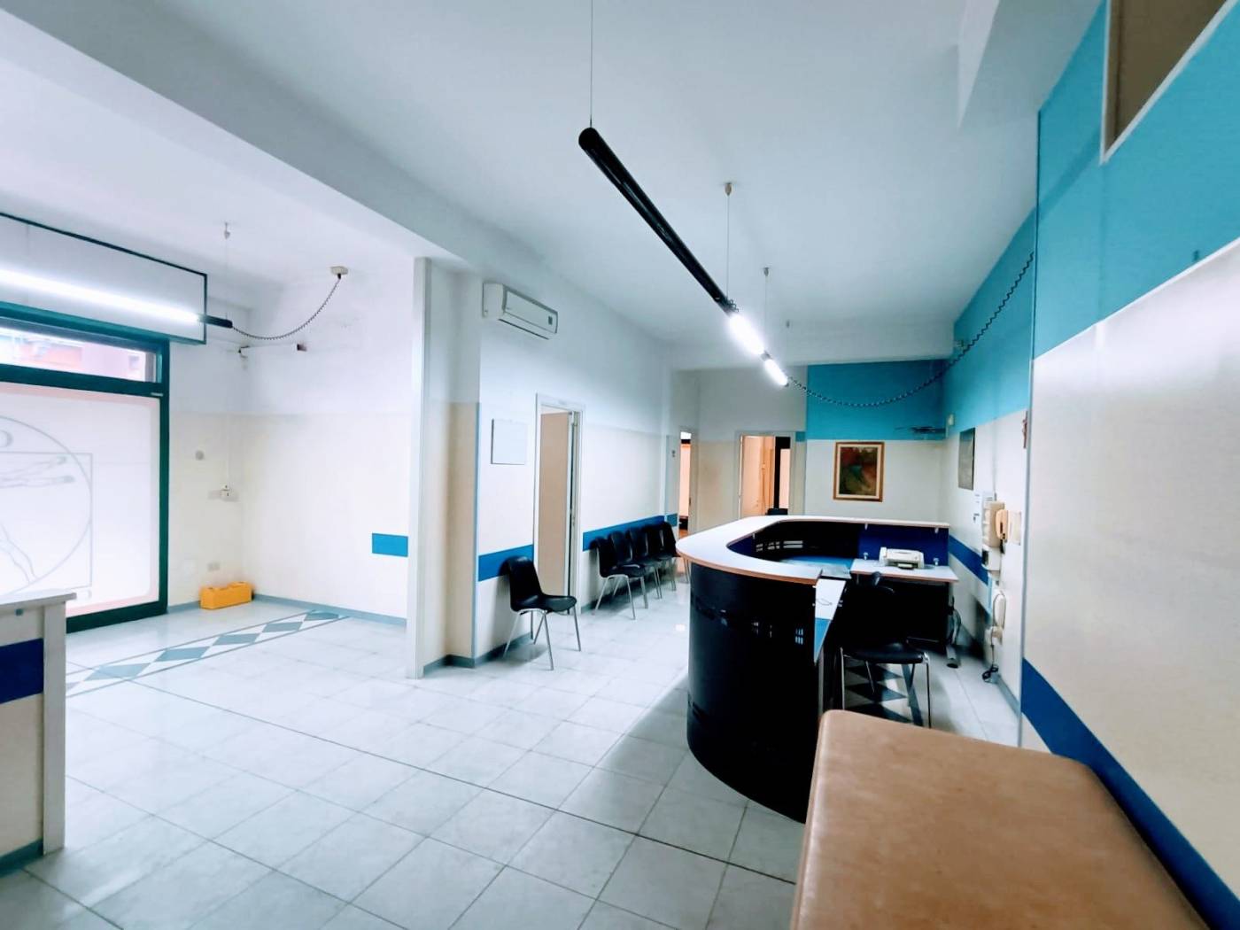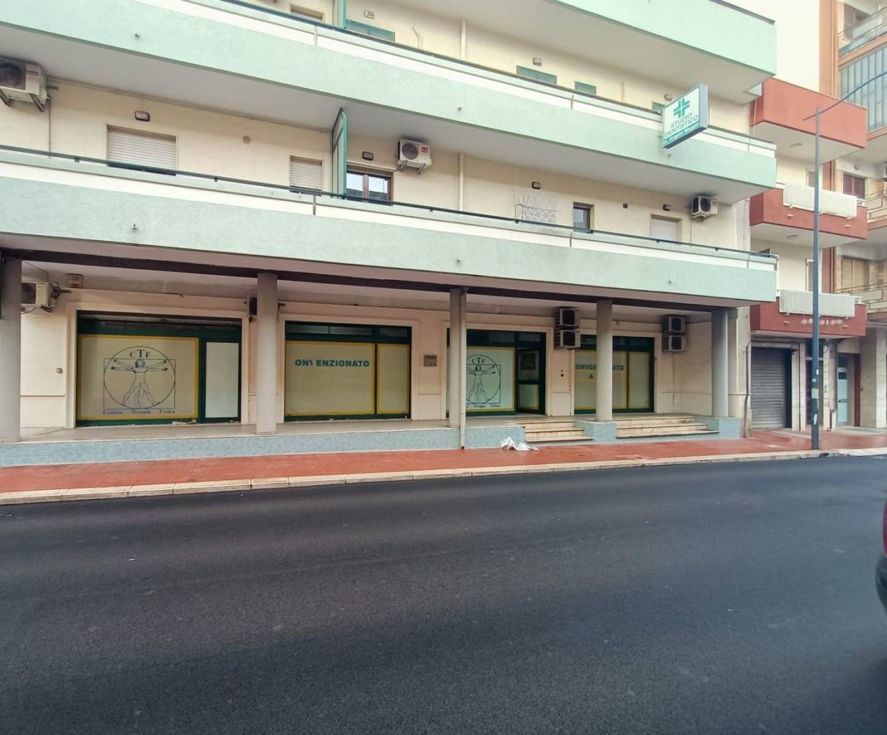 SPAZIO IMMOBILIARE propone in vendita, in zona ad alto traffico veicolare e pedonale, ampio locale commerciale di 400 mq, disposto su un unico livello al piano terra e fornito di quattro vetrate su strada e cinque vetrate su cortile. Attualmente strutturato per accogliere un centro medico-fisioterapico. L'immobile, grazie alle generose dimensioni, consente di essere utilizzato per le più svariate attività. I locali dotati di tre uscite d'emergenza sono composti da zona reception accompagnata da sala d'attesa, uffici, sala medica, sedici box, ampio disimpegno, palestra, spogliatoio uomini e spogliatoio donne, lavanderia, tre bagni di cui uno per disabili, area servizi pazienti e deposito. Possibilità di locazione al canone mensile di Eu. 2.700,00. Le presenti informazioni e planimetrie sono meramente indicative e non costituiscono elementi contrattuali.