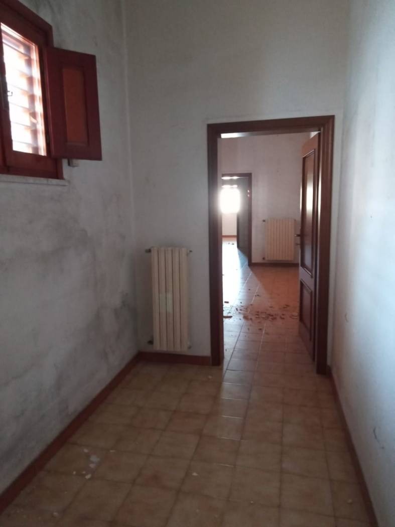 SPAZIO Immobiliare propone in vendita in San Giorgio Ionico (TA), in zona centrale, appartamento al primo piano cui si accede da scala indipendente. L'immobile da ristrutturare è composto da quattro vani, cucina, bagno, piccolo balcone sul fronte strada oltre terrazzino e sovrastante lastrico solare. La superficie utile dell'abitazione è di circa 100 mq., quella del balcone e del terrazzino a livello di complessivi 15 mq.. L'appartamento è dotato di portoncino d'ingresso blindato, porte interne in legno massello, infissi esterni con vetrocamera e persiane in legno. Riscaldamento autonomo a gas e caloriferi in ghisa. L'immobile necessita del rifacimento dei solai e di manutenzione straordinaria.