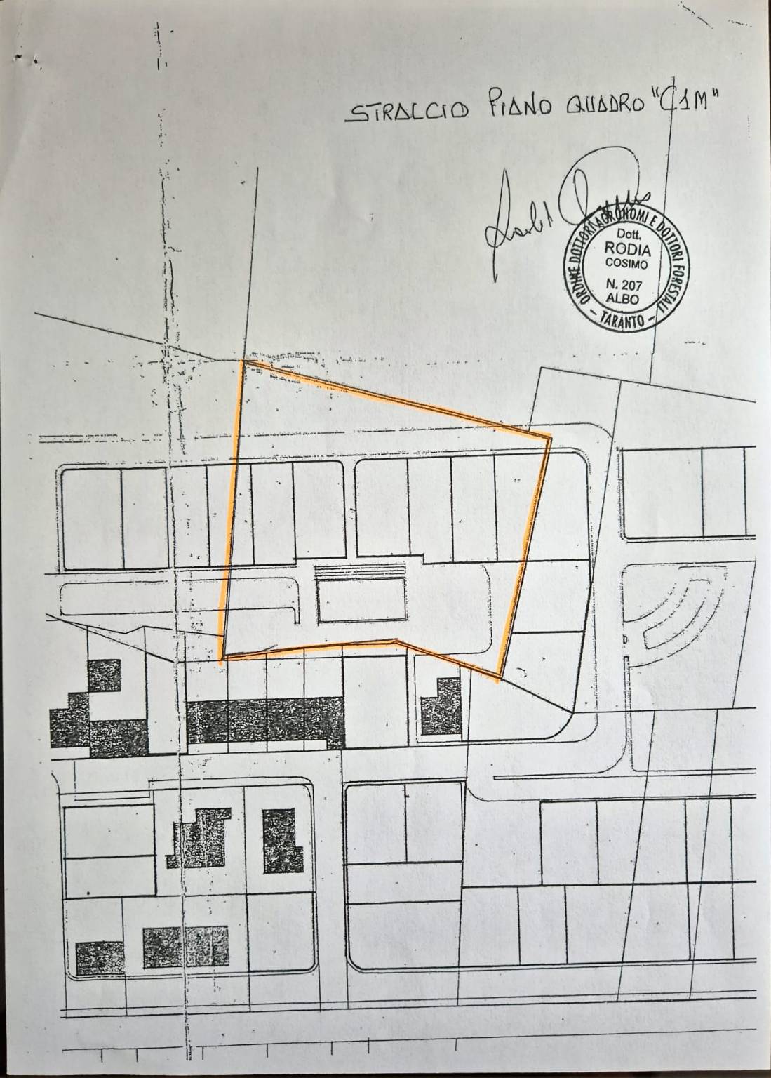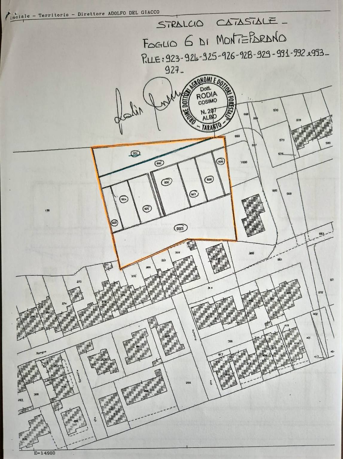 Il terreno è composto da dieci particelle avente destinazione urbanistica edificabile pari a mq 2.300 in zona abitata con strada e opere di urbanizzazione. Nelle immagini è riportata con la linea aranci l'intero blocco, la linea verde separa l'unica particella la n 991 con destinazione agricola.